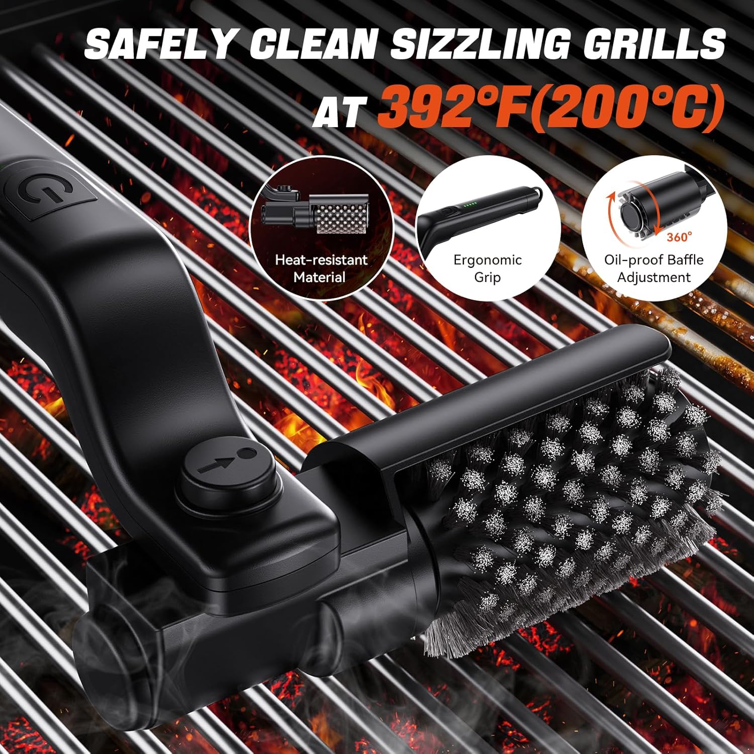 ✔️ Heat-Resistant Body (392°F) – Clean warm grates safely