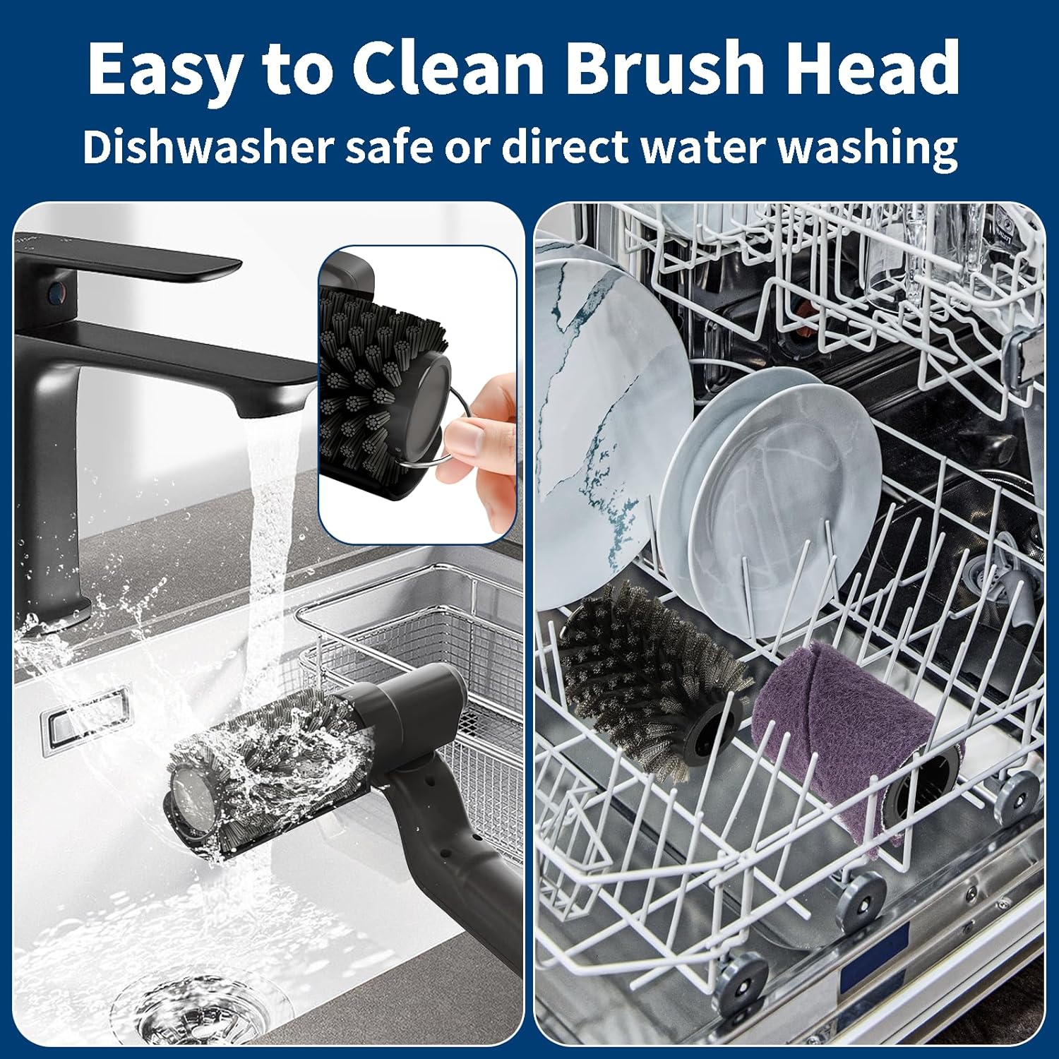 The detachable brush head rinses clean in seconds, or just toss it in the dishwasher. Easy. Efficient. Hassle-free.