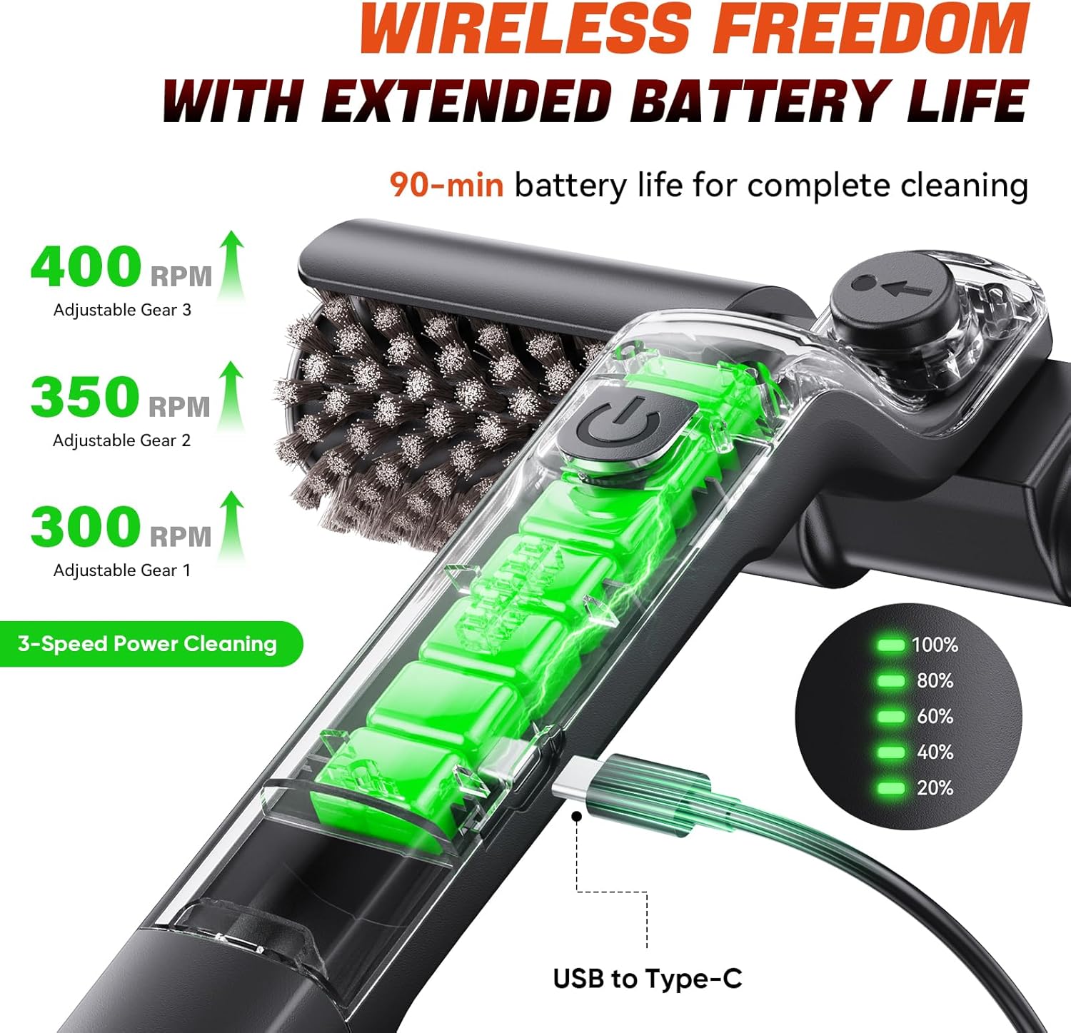 ✔️ 410 RPM 3-Speed Cleaning Power – Choose your intensity