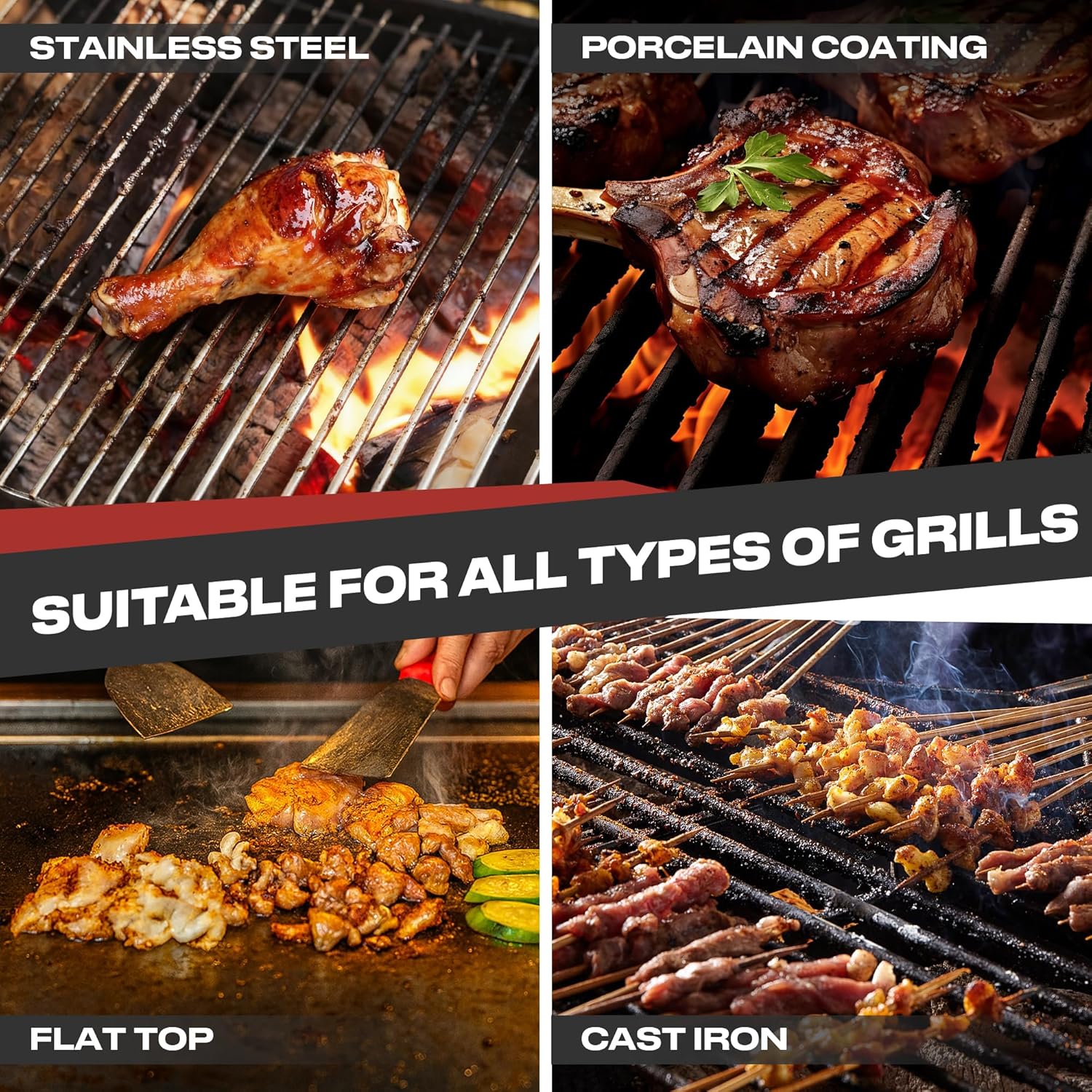 ✔️ Multi-Surface Compatible – Works on ceramic, cast iron, charcoal, gas & stainless steel
